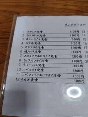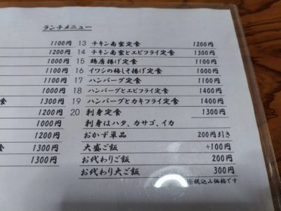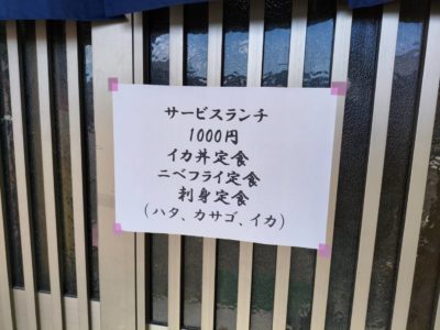 サービスランチがイカ丼、ニベフライ、刺身定食の3つ
