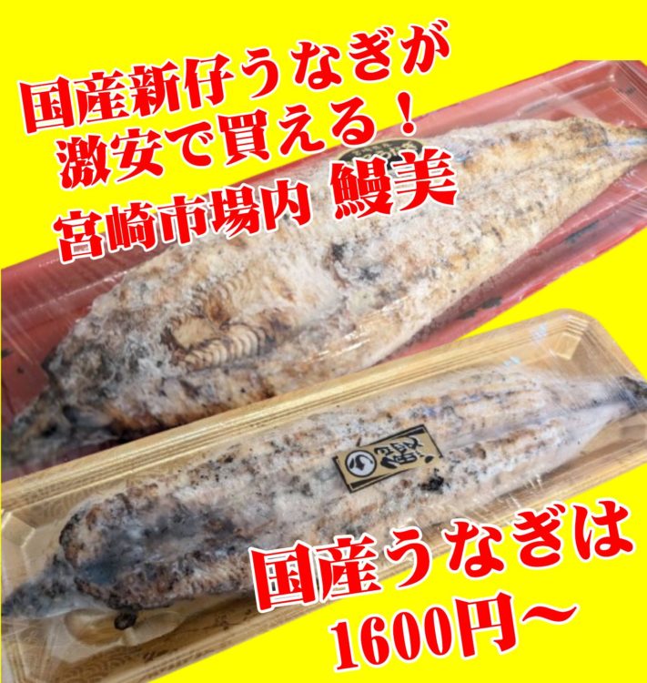 宮崎中央市場内の鰻美。店内飲食以外にも鰻1尾で販売しております!