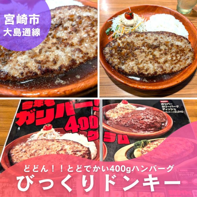 宮崎市大島通線【びっくりドンキー】期間限定メニュー!でっかい!400gのガリバーバーグ! ひじり~ 1年前 今年もこの季節がやってきました! びっくりドンキーのガリバーバーグ!なんとその大きさ400g!! ハンバーグ以外にもどでかいガリバーメニューがあります!!そして衝撃的だったのが木のメニューじゃなくなってた( ;∀;)ガリバーバーグ1570円サラダライスのワンプレート見てこのでっかいハンバーグ!びっくりドンキーのハンバーグ好き。400gあっさり完食さらに!!11月19日までソフトクリームも安くなってる!! 北海道ミニソフト激うまでした。気軽に行けるハンバーグ専門チェーン店です! ごちそうさまでした(*^^*) びっくりドンキー大島町店 宮崎県宮崎市大島町国草124−1 0985-35-5456 この記事が気に入ったらいいね!しよう最新情報をお届けします