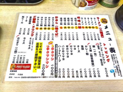 野菜、あぶら「マシ」まで同一料金。普通にしましたが、がっつり食べたい方はマシで。