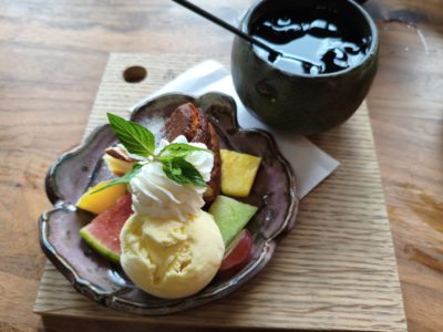 スイーツはレモンケーキとアイス。ドリンクはアイスティー