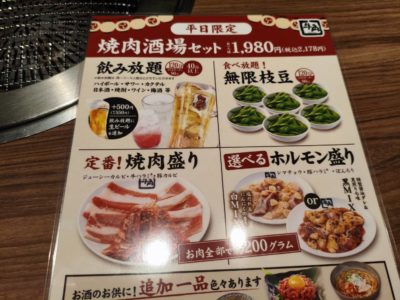 焼肉酒場セット!!平日限定
