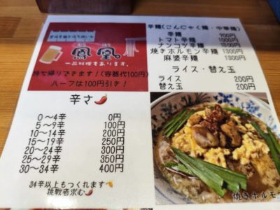 宮崎市松山【〜宮崎辛麺とほろ酔い処〜 鳳凰。】初体験の焼きホルモン辛麺を堪能!!