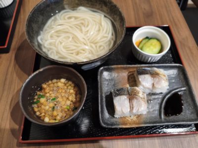 釜揚げうどんと炙り魚寿司のセット960円