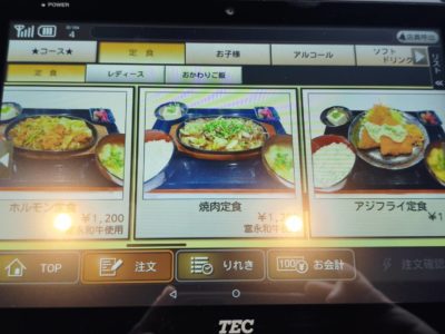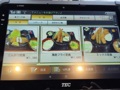 定食は1200円~1500円位の定食が多い