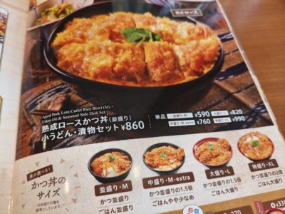 カレー、定食、カツ丼もバリエーションが豊富ですがやっぱり初回はオーソドックスに行きたい。熟成ロースかつ丼並盛590円豊富なドレッシングで味変も楽しそう。こちらかつ丼590円これよこれ。シンプルイズベスト厚みあるカツ。食べやすいサイズにカットしてくれているのも嬉しい。
