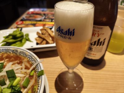 らーめん、おつまみ、ビールを注文。