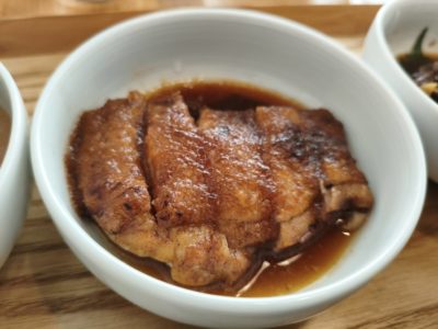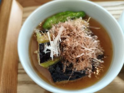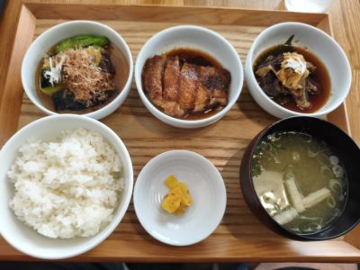 ナスの揚げ出し、チキンソテー、カツオのタタキ煮の3つをチョイス。