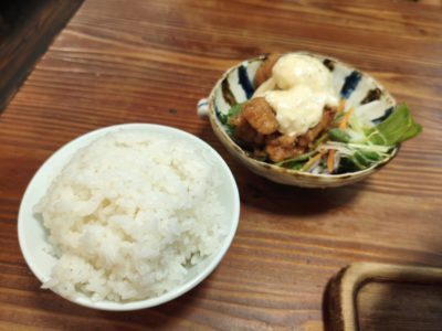 大きなチキン南蛮2個と普通盛だけど盛り盛りなごはん!