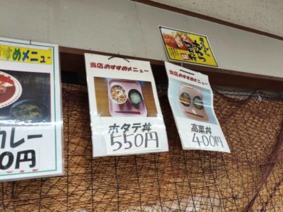 ホタテ丼550円、高菜丼400円!!