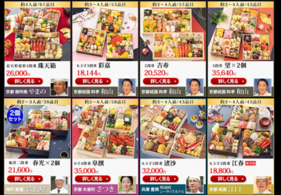 おお!!凄いラインナップ!!てかはずれ無しやん。1万円台のおせちも全部内容は豪華!!