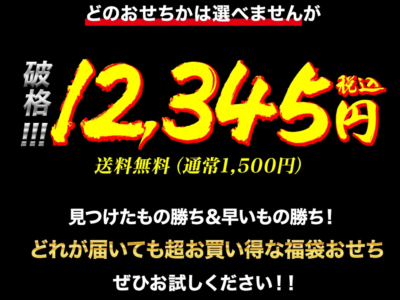 12,345円(税込み・送料無料)どのおせちが届くかは運次第。