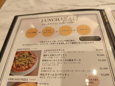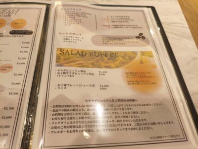 メイン1品+サラダバー+ドリンク+デザートで2300円~とのこと
