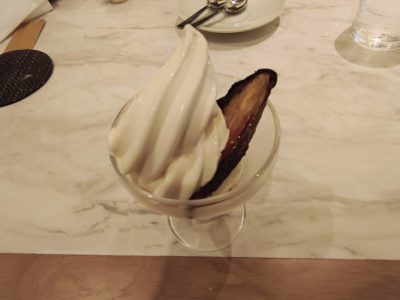 ミニパフェ。サツマイモのブリュレ?が添えられてておいしい♪