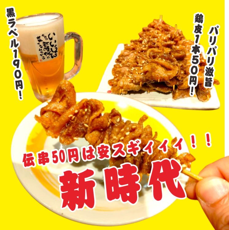 何とぱりぱりの激旨鶏皮の伝串が50円~!!!