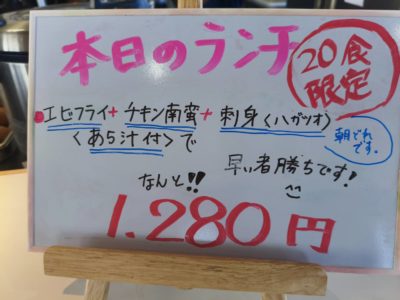 海鮮丼も気になったけど20食限定の本日のランチを注文。