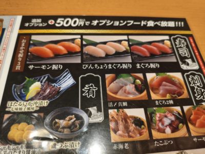 +500円でお刺身や寿司もついてくる!!